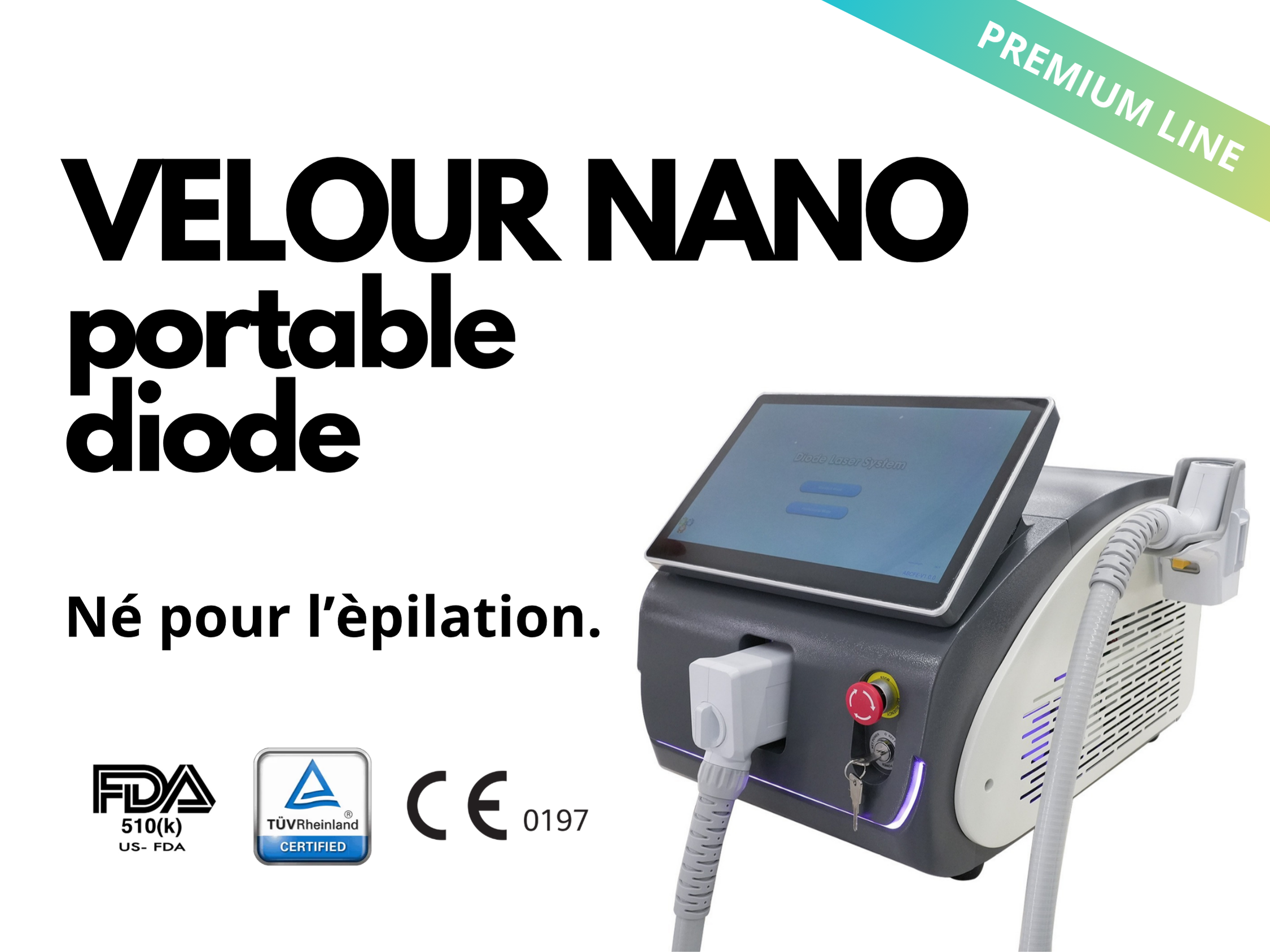 – Le VELOUR NANO, pour une épilation définitive portable, plus rapide, plus sûre, plus efficace.