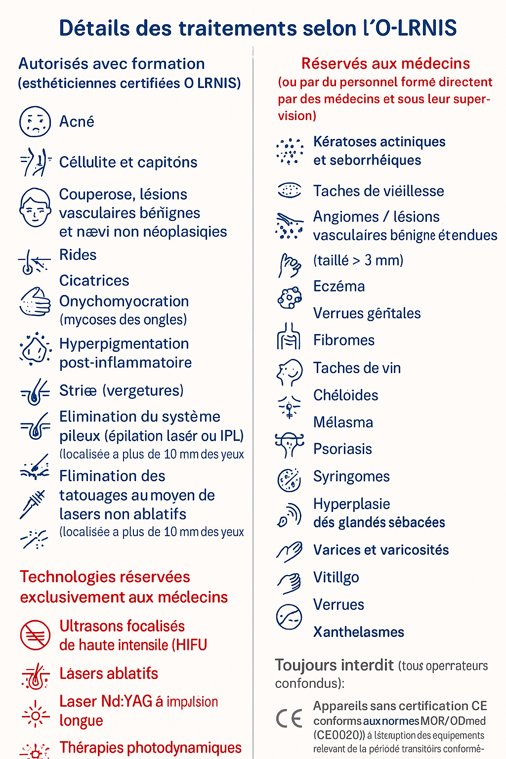 Aujourd’hui, l’O-LRNIS fixe une ligne nette entre l’esthétique, le paramédical et le médical.